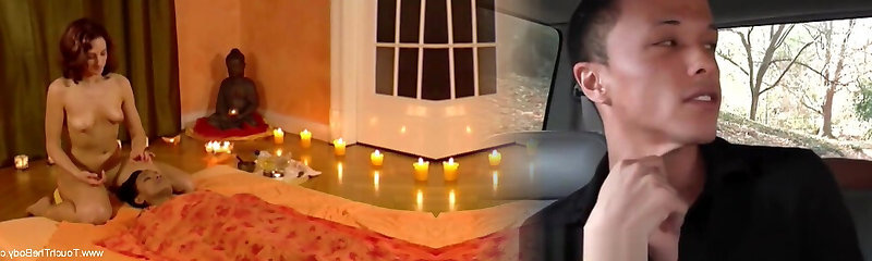 Sizzling masseuse touches virgin body of Helen Ondine with her tits