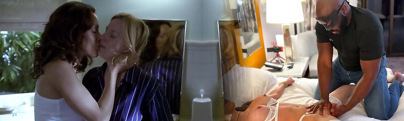 Kissing her curvy babe Mindi Mink enjoys some fantastic lesbian hook-up