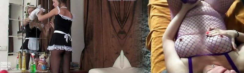 Cute maid teen caught a horny Milf with a plaything in a pussy