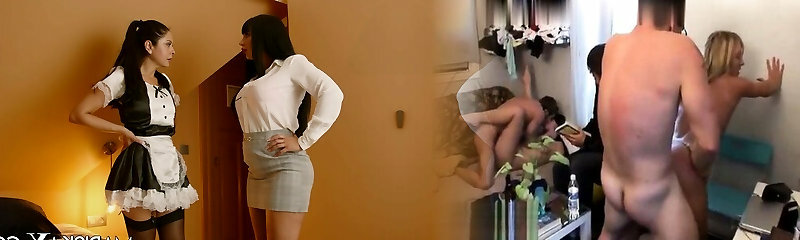 Hot lesbian hookup with sexy maid and nice brunette girl in the hotel