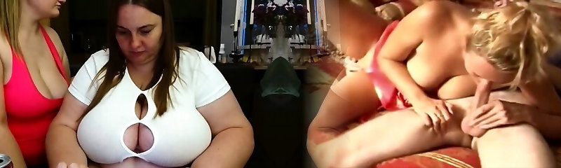granny plays with her daughter-in-law's huge tits and tongues her nipples