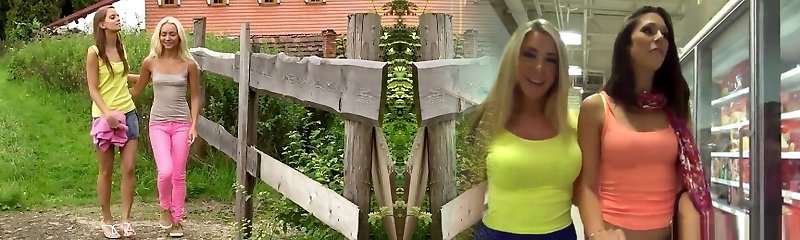 Etty Luxxx and Xanthia have fun with two lesbians outdoors