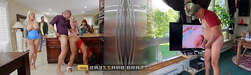 Swinger Party Ends Up With a Hot Three-some When Two Curvy Buxom Hotties Determine To Share the Same Cock