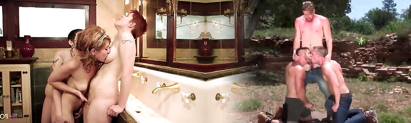 Mature lesbian threesome moves from the bathroom to the bed