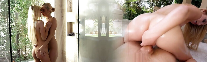 Sexy lesbian babes Alice March n Rilee Marks enjoy smooching and frolicking with pussies using finger and tongue inside the douche