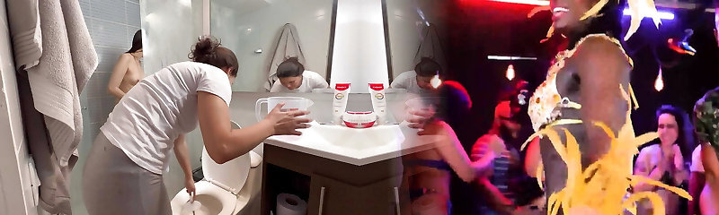 Ebony woman likes to have gang hookup sessions with girls, especially in the bath tub