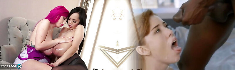 Two bombshell lesbian gals Octavia Red and Rissa May indulge in a sultry sex with licking and fingering