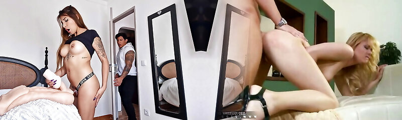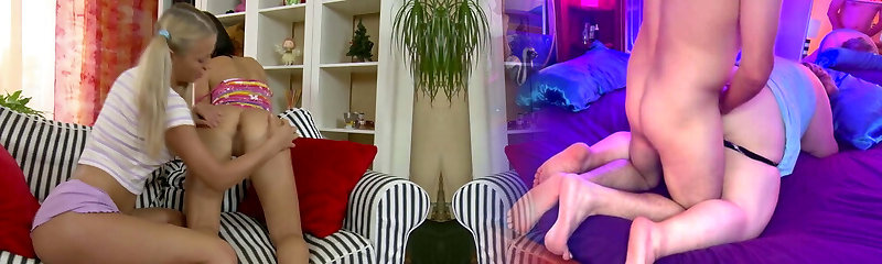 SisLovesMe - Two Sexy Stepsisters In Lace Lingerie Norah Nova & Selena Stone Share One Successful Boy
