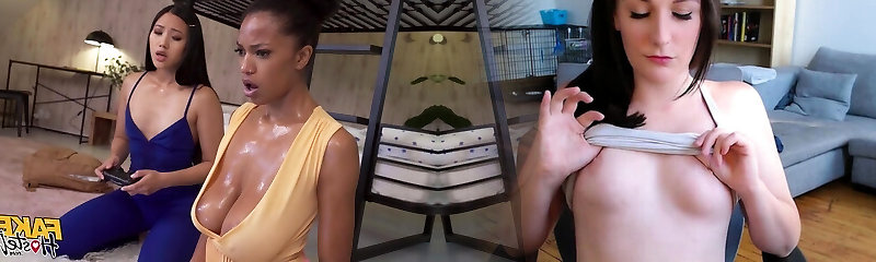 Ebony gamer chick seduced by an chinese lesbian into a threesomewith her boyfriend