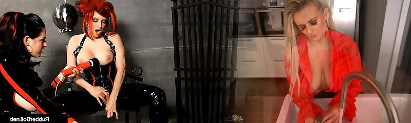 Latex Lesbians RubberDoll & Rubber Painted Lady Strapon Fuck