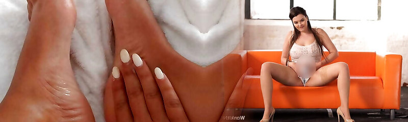 STRAP-ON SUCK foot fetish Kittling latex submissive PVC fetish pantyhose nylon adore - Arya Grander and mod Fetishaura