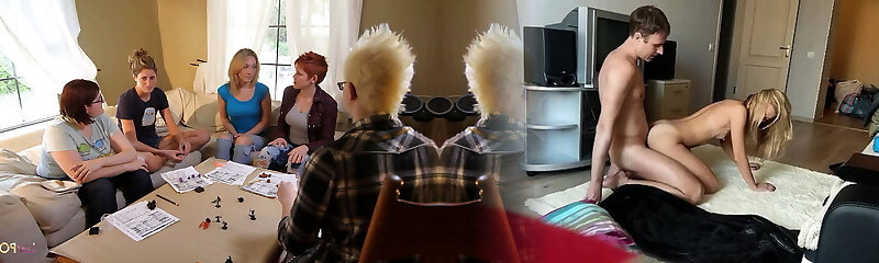 The game night gets molten as the lesbian redhead seduces the blond and they start kissing and fingering