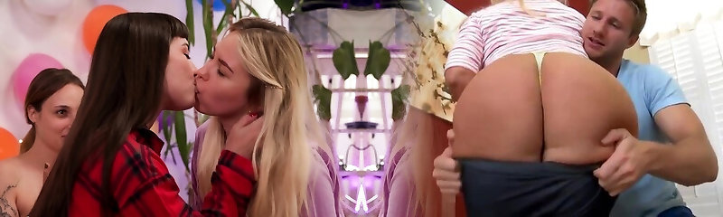 Two 19 Year Old Stepsisters Participate in a Hot Girl/girl Orgy with Their Lecherous Busty Tutor!