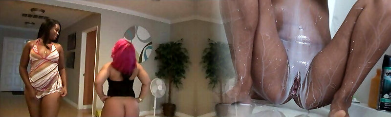 Black lezzies with really big butts and tits enjoy toy-poking