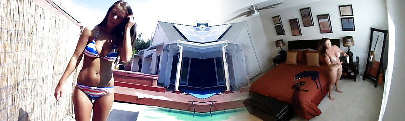 Violet Rain has kinky idea to eat and to masturbate pussies by the pool