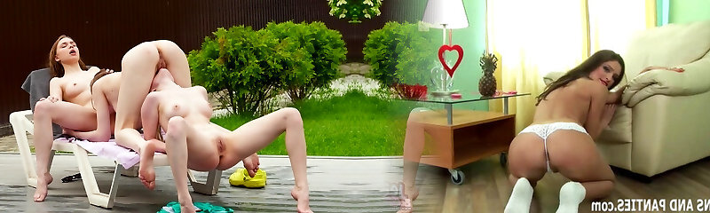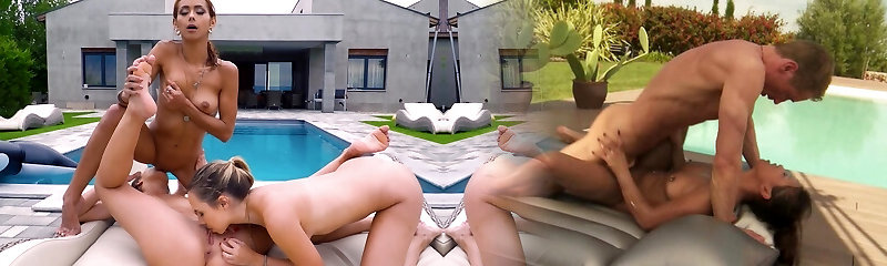 Gonzo Threesome with 2 Hot Babes Outdoors at the Pool