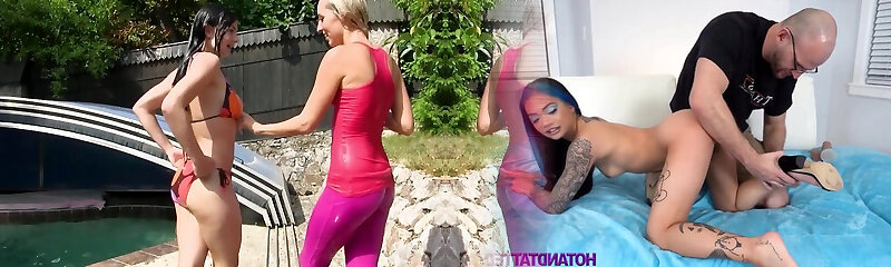 Sexy bitches tribbing and fucking after they hook up in the pool