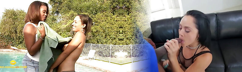 Ebony lesbians from pool to indoors wands
