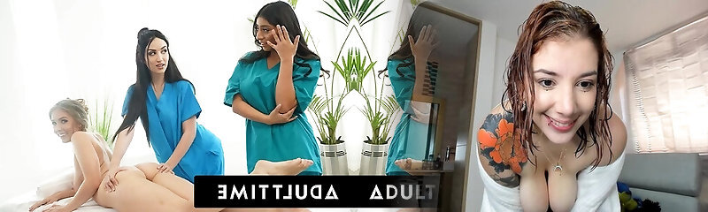 ADULT TIME - Newbie Masseuse Violet Myers Full RUBDOWN From Lena Paul and Jade Baker in LEZ Three-WAY!