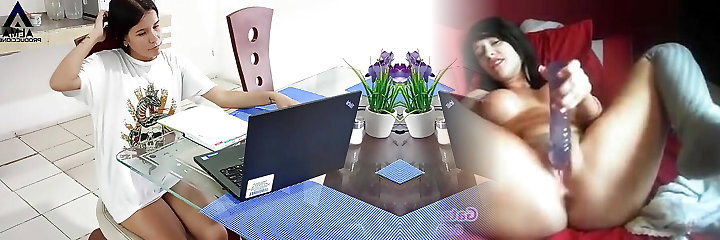 my sister-in-law is video calling with her beau so I join in and we smash so her boyfriend can watch us.