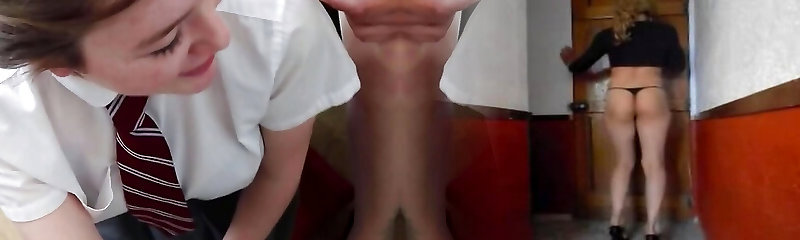 20 jahre schulmaedchen in Uniform und strapsen lecken sich die Labia