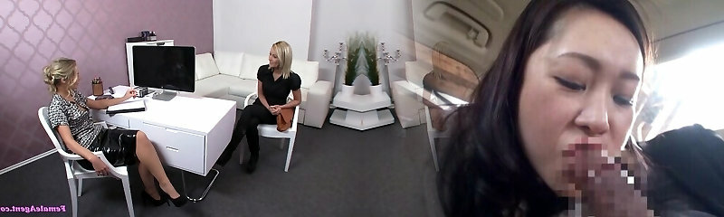 Female Agent Shy Asian models sexy body turns agent on