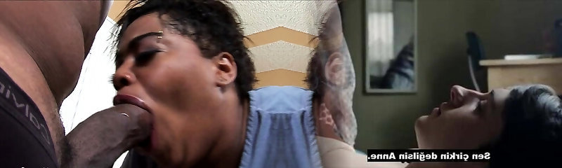Big titted black lesbians eat pussy and fuck faux-cocks