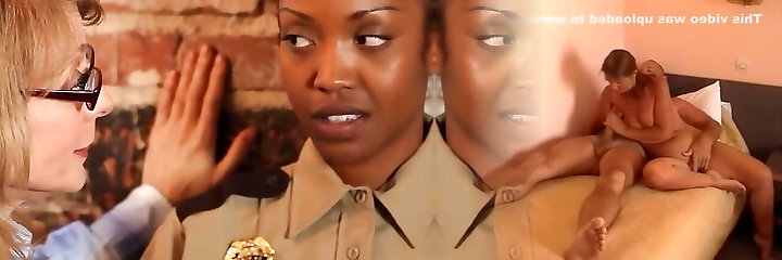 Interracial lesbian 3some featuring Nina Hartley as a police manager is always kinky