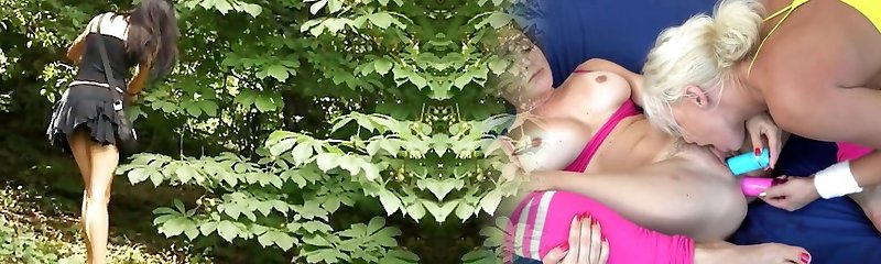 Nubile lesbians filming sex outdoors